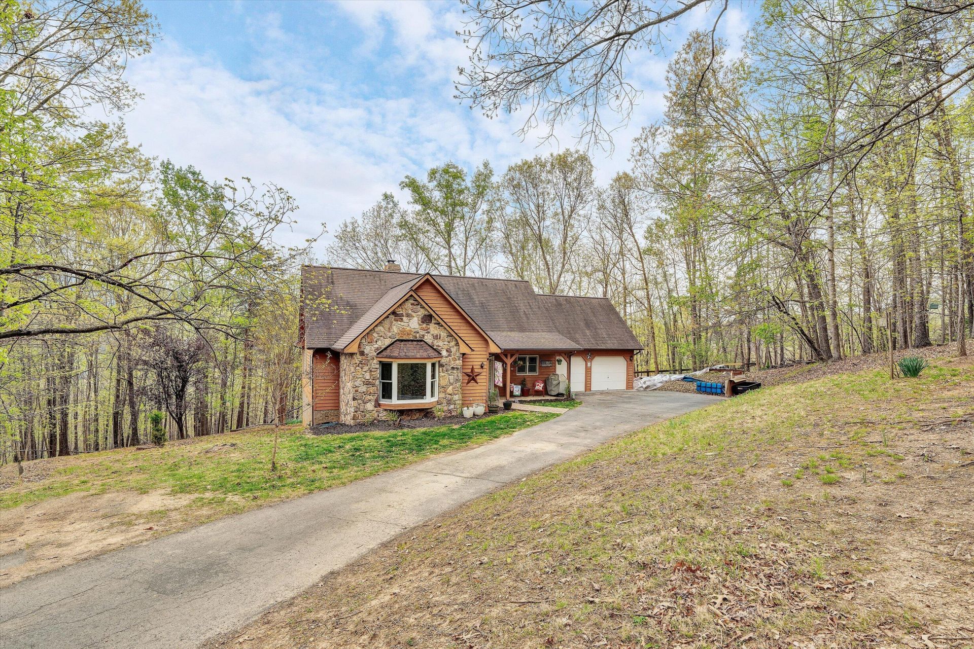 Tucked away on 5.7 beautiful acres with a mix of wooded privacy and open space, this home offers the best of both worlds-room to breathe with convenience you can't beat. From the moment you walk in, your eyes are drawn to a full wall of windows showcasing views of trees and mountain peaks, filing the space with natural light and leading seamlessly to the deck-perfect for taking in picture-perfect sunsets and an abundance of local wildlife. The living room is the true centerpiece , featuring cathedral ceilings and a striking stone fireplace-equal parts cozy and impressive. Fresh paint throughout, hardwood and vinyl flooring, and an attached 2-car garage add to the appeal. And the location? Just minutes to I-81 and everyday amenities- yet it feels like your own private escape.